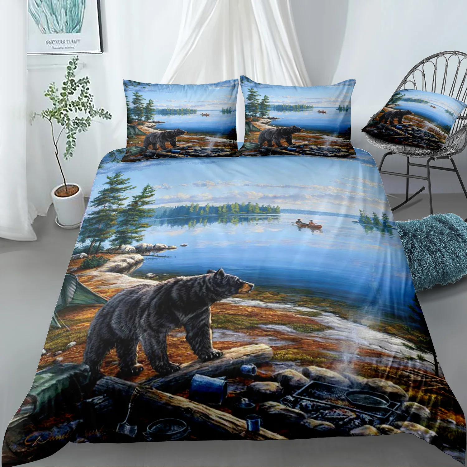 Indigenous Bedding Set Elephant Peacock Deer Dinosaur Bear Crane Duvet Cover with Pillowcase Bedroom Decor Size Twin Full Queen King