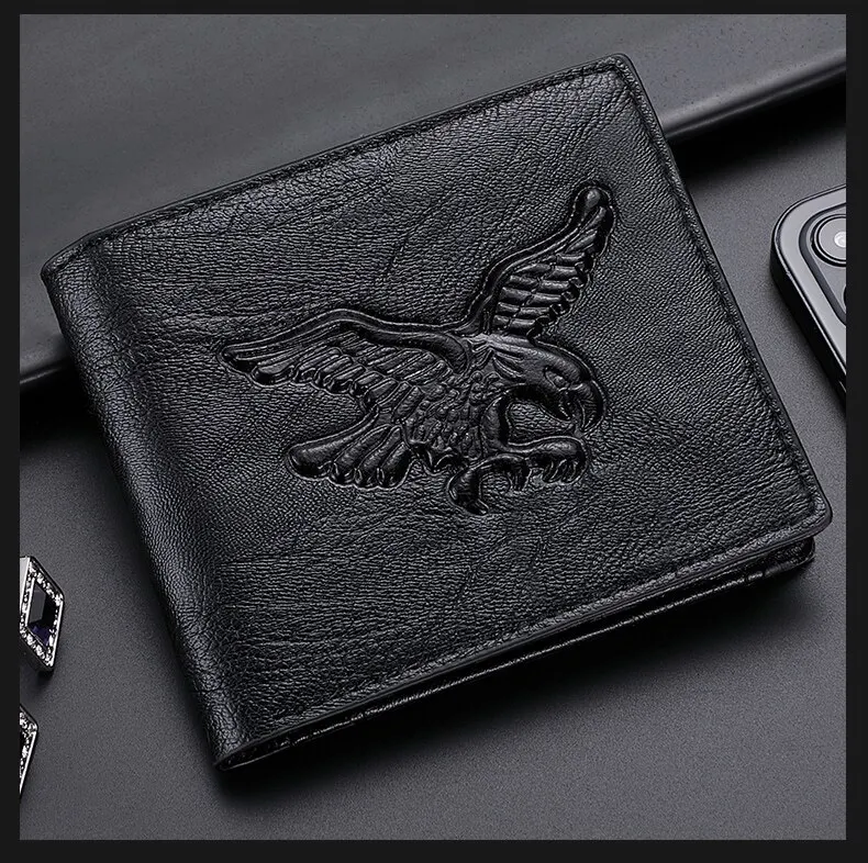 New Men Short Wallet 3D Eagle Relief Pattern Casual Credit Card Coin Wallet