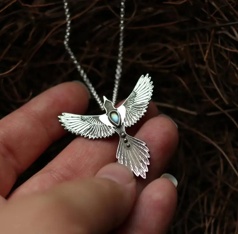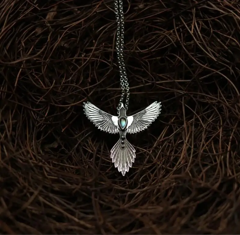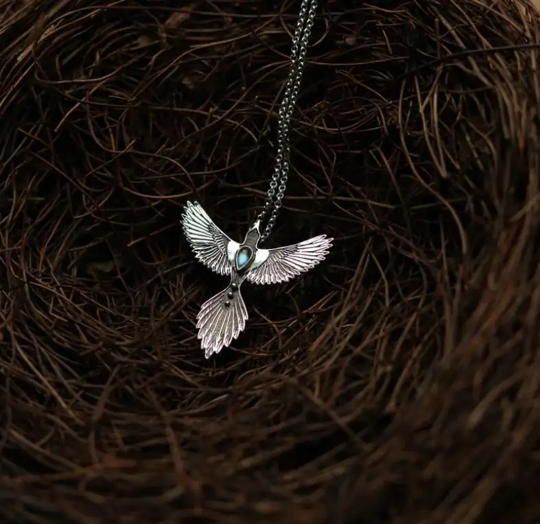 Europe America Retro Silver Color Invisible Inlay Embellished Blue Zircon Phoenix Pendant Necklace UNISEX Leisure Daily Necklace
