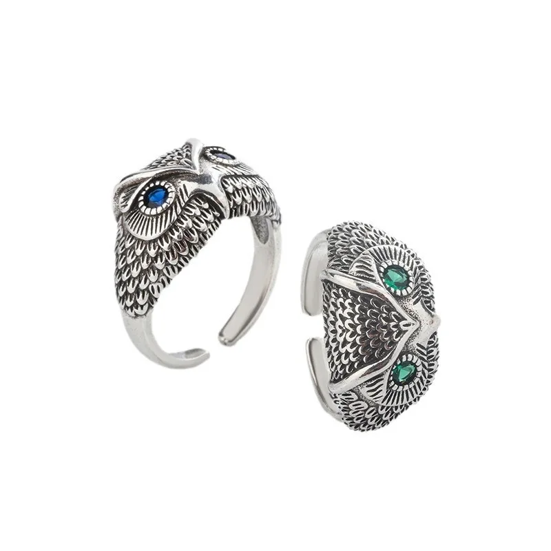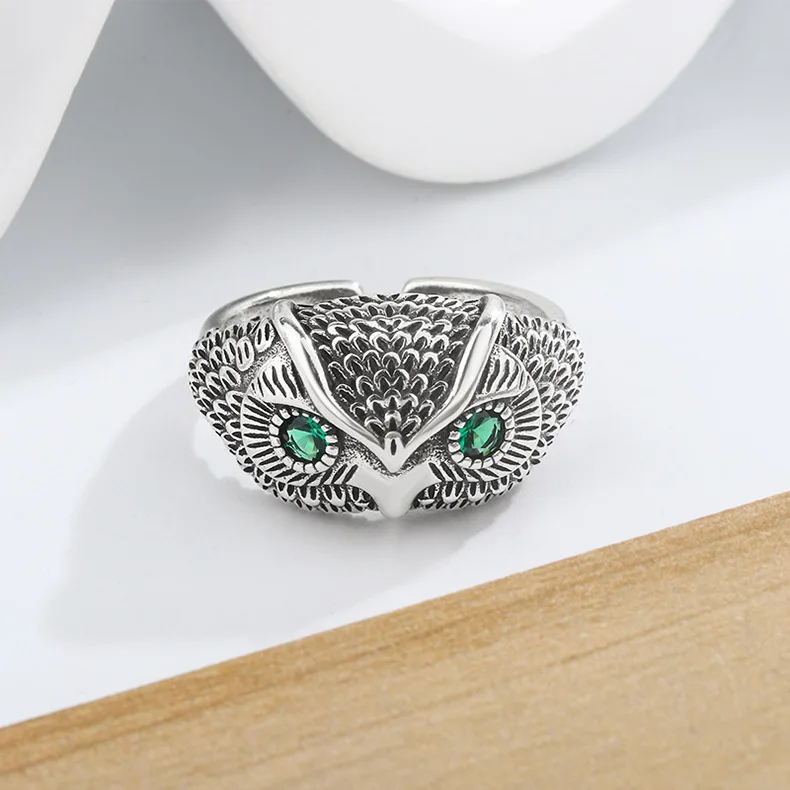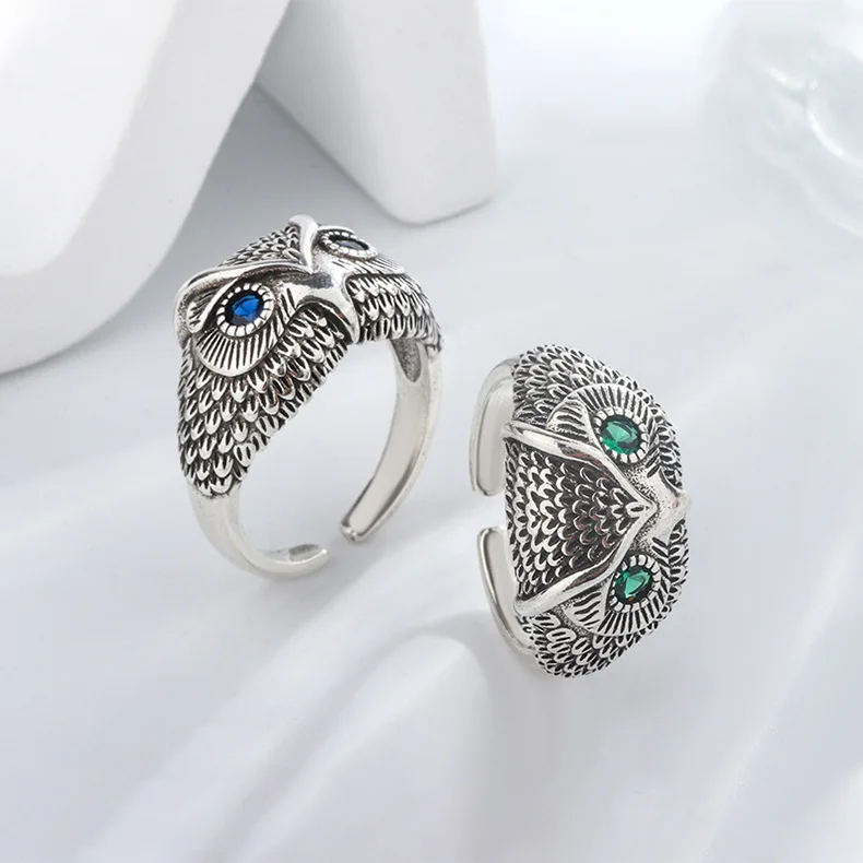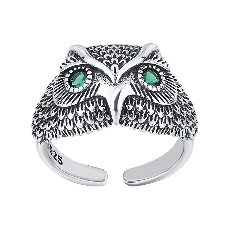 Style Fashionable Exquisite Retro Owl Shaped Zircon Design Ring Jewelry Gift 925 Sterling Silver Finger Ring for Women